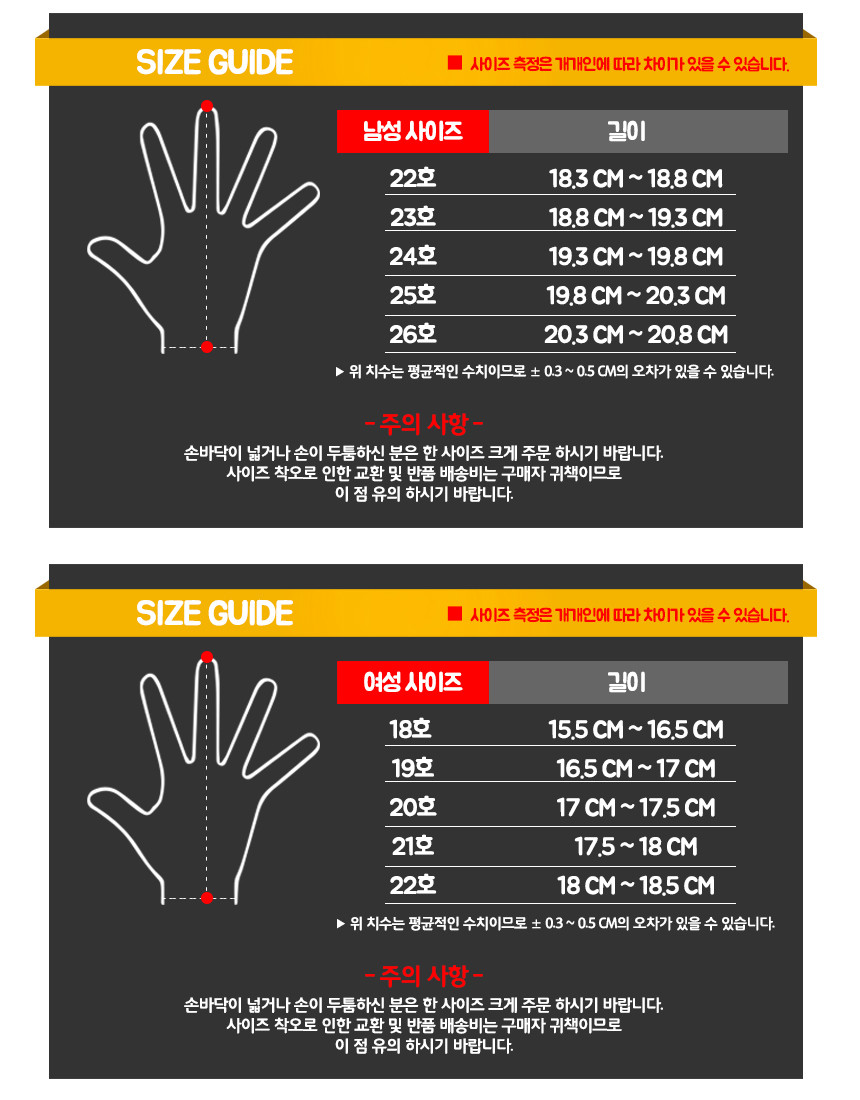 상품은 양손과 오른손잡이용 왼손장갑 으로 준비되어있습니다.