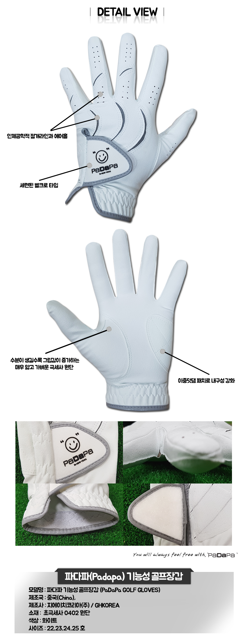 땀에 젖거나 우천시 라도 강한 그립력을 유지하는 기능성 골프장갑입니다.